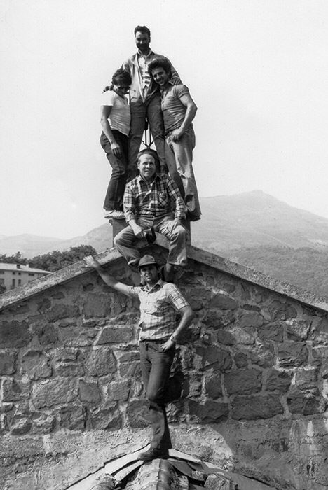 Durante i lavori di manutenzione della chiesa.Gentili Marietto-Caccialupi Romolo-Ferretti Rino-Gambarelli Benito e Ferretti Guido