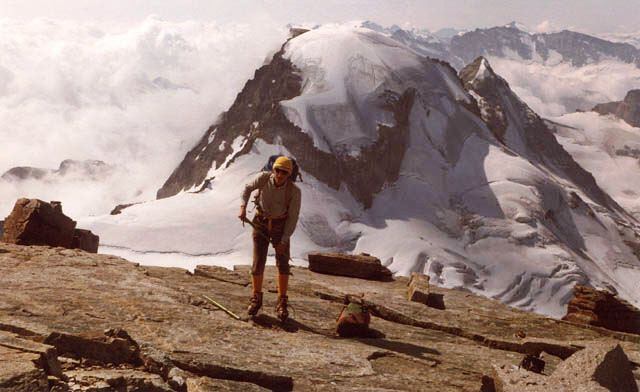 Un momento di riposo durante la discesa dalla vetta del Gran Paradiso.Alle spalle il Ciarforon con il suo versante nord perennemente ghiacciato.