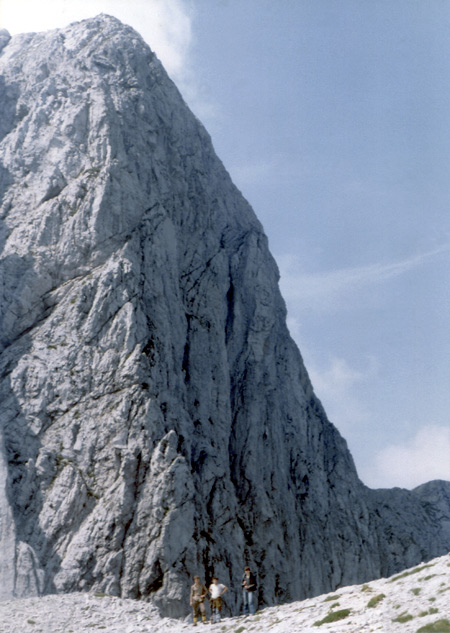 Di fronte agli impressionanti 700 metri della parete nord del Pizzo d' uccello sulle Alpi Apuane.