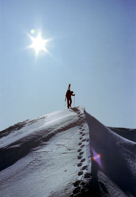 Foto controluce di Gino sulla cima del Casarola in una limpida giornata invernale.