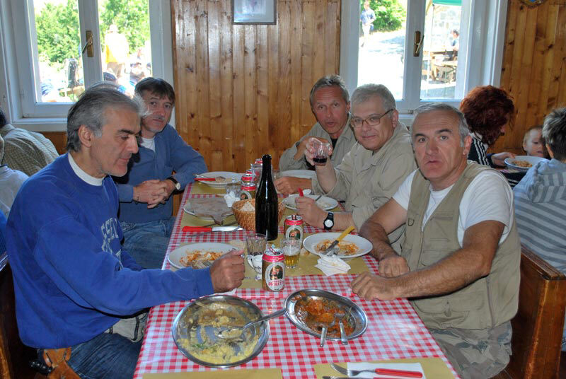 Valli brinda all' impresa con i piedi sotto il tavolino.