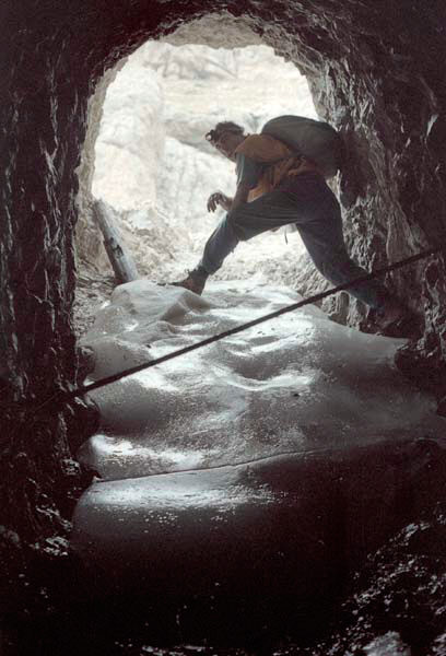 Al termine della galleria scavata dagli alpini nella grande guerra, per minare le postazioni Austriache.