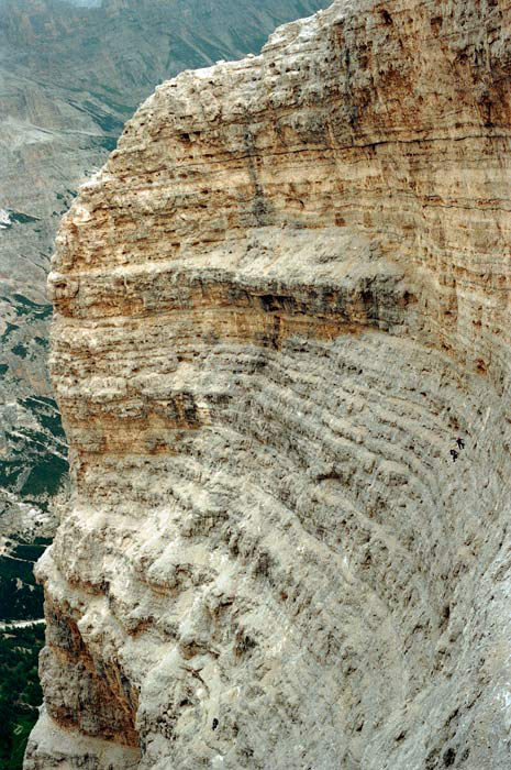 Notare i puntini al centro della foto sulla destra. Sono Gianluca e Ferroni.A parte sottolineare l' impressionante parete, sembra che gli avessi dato un bel distacco. Poi pero' li ho aspettati.
