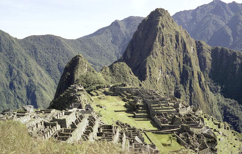 Classica foto di Macchu Piccu dalla Porta del Sole.Alle spalle della citta' il Wayna Piccu, salito da Leo in un ultimo impeto di entusiasmo.
