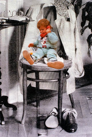 04-11-1987.Fotomontaggio di tipo tradizionale eseguito con una pellicola da 200 A, scattando con un tempo di 1/60 a diaframma chiuso al massimo.Lo sfondo in bianco e nero e la figura del bambino sono stati posti su un piano fisso e ripresi con luce naturale. Si nota un po' di grana dovuta all' originale dello sfondo di scarsa qualita'.