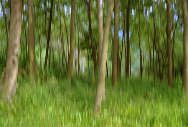 10-07-1987.Utilizzando un diaframma chiuso (11), ho ottenuto la massima profondita' di campo.Poi ho impostato lo scatto ad un tempo lungo (1/15) ed ho mosso la fotocamera verticalmente durante la posa.Il risultato e' questa immagine sfocata in senso verticale con l' illusione del movimento.