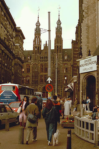06-04-1985.Immagine che ritrae una via movimentata di Amsterdam .