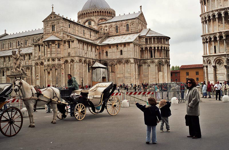 02-05-2004.Sul margine del "campo dei miracoli" i calessi attendono i turisti.